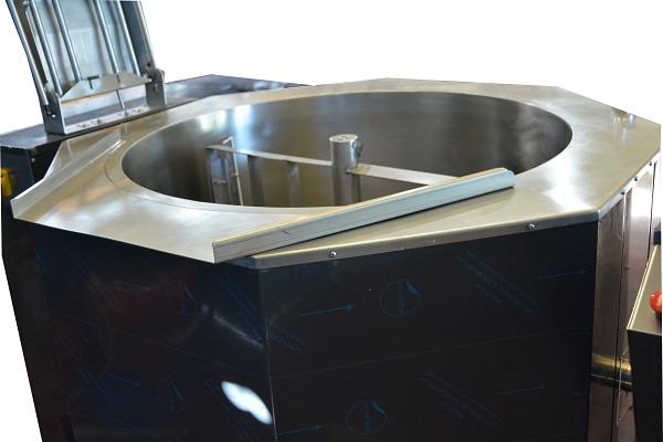 mediante basculamiento motorizado, manteniendo la altura de boca de descarga. , Fabricada con Cuba interior de fácil limpieza (curva sanitaria)